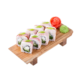 Saumon braisé, concombre, cheese, avocat, ciboulette chips, piment.